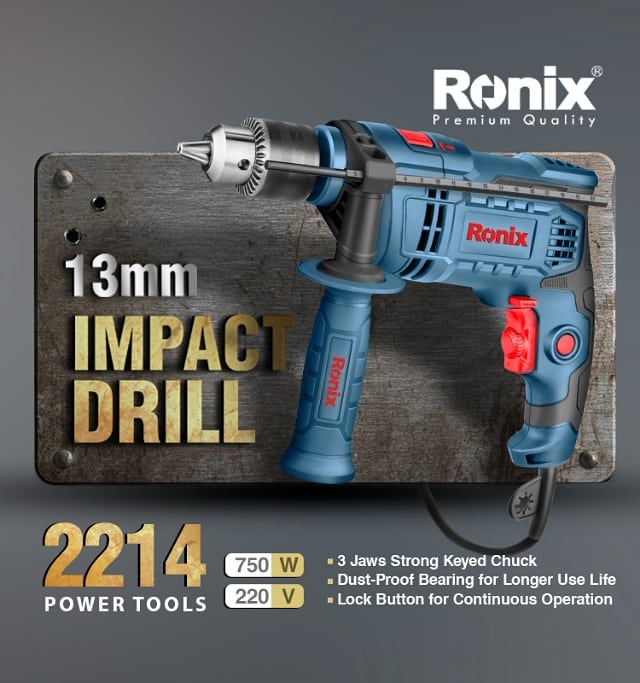 Dust on the job site is to be expected, but a broken tool switch is the last thing anyone wants. The Ronix 2250 Corded Impact Drill, 850W, 2Kg features an anti-dust switch as well as variable speed reversing and forward and reverse rotation for more precise drilling. Drilling/screwing and hammer drilling are the two modes of operation for this handy drill. There’s also a lock-on button, which locks the speed without requiring a steady hold on the trigger, reducing hand fatigue.=