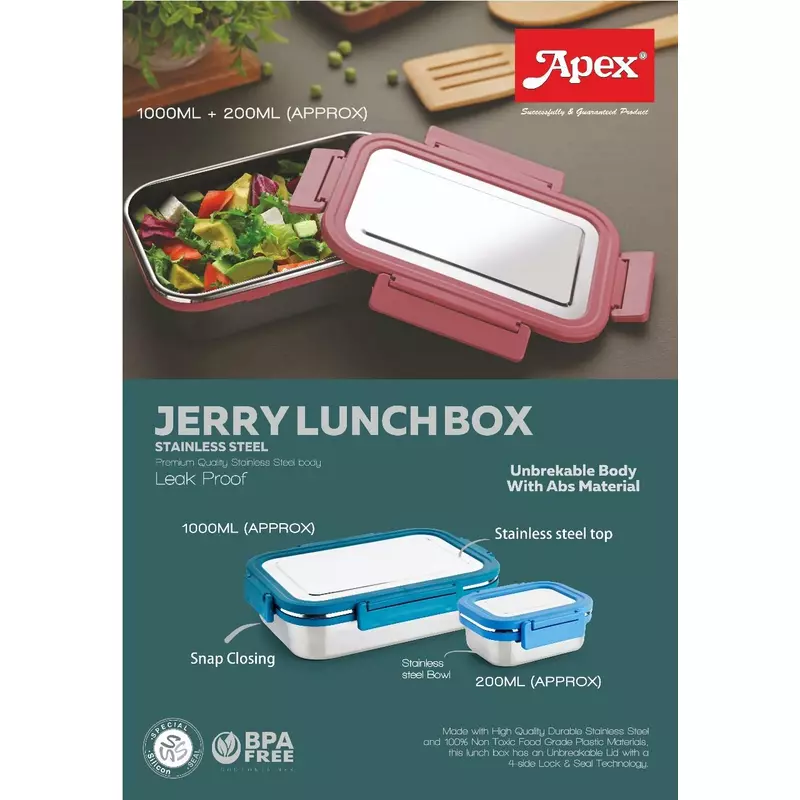 Apex Jerry Lunch Box 700ml and 200ml Steel Body Leak Proof Containers 2pc Set 450186