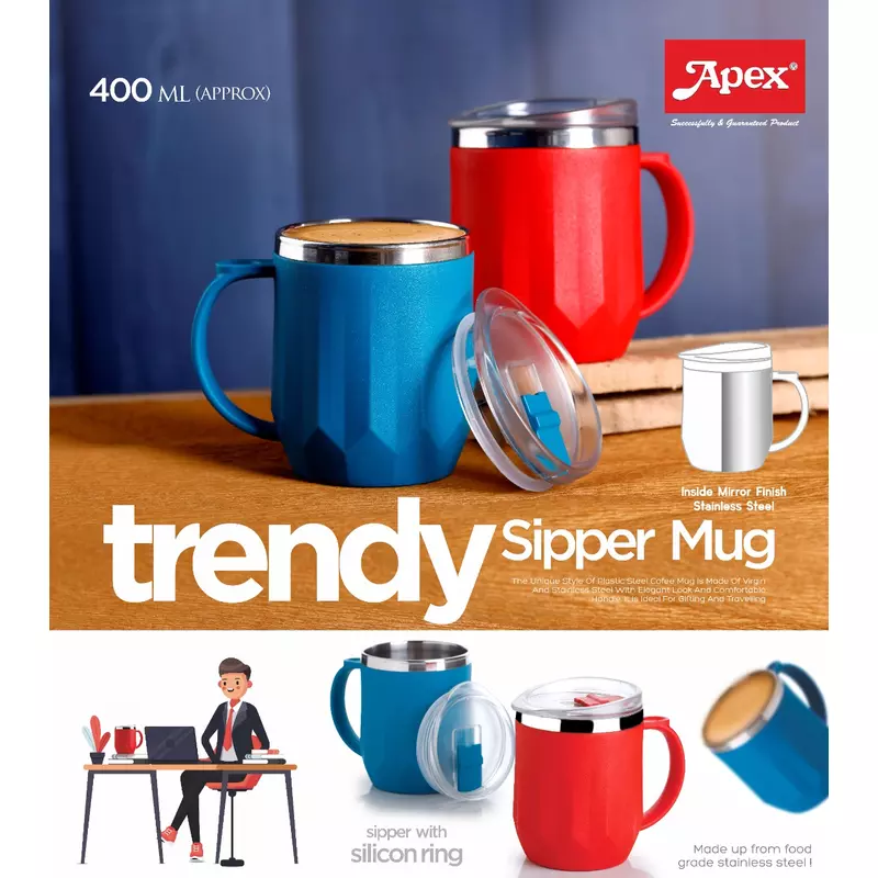 Apex Trendy Sipper Mug 400ml Spill and Leak Proof Unbreakable 450162