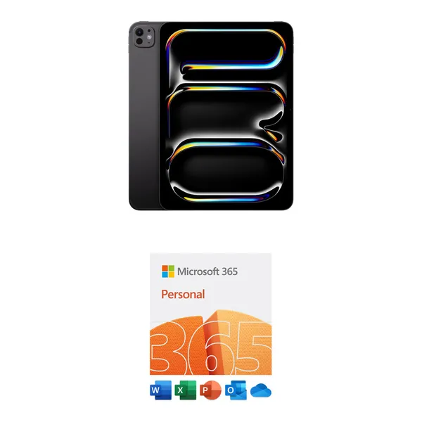 Apple 11″ iPad Pro M4 Chip with Microsoft 365 Personal 1-Year License Standard Glass, 512GB, Wi-Fi Only, Space Black
