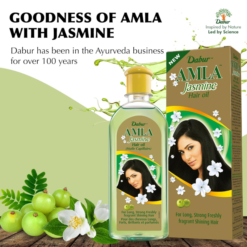 Our Dabur Amla Jasmine Hair Oil adds a fresh fragrance to the hair and contain other natural ingredients that nourishes and strengthens the hair to give you silky soft hair. Our Amla Jasmine Hair Oil has the benefits of Amla fruit (Indian Gooseberry), which provides nourishment and moisture that helps you achieve beautiful, healthy, and shiny hair.