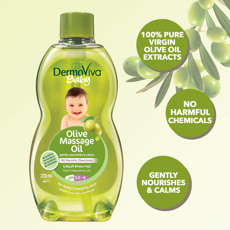 Dabur Dermoviva Baby Olive Massage Oil 200ml – Set of 3 Pcs
