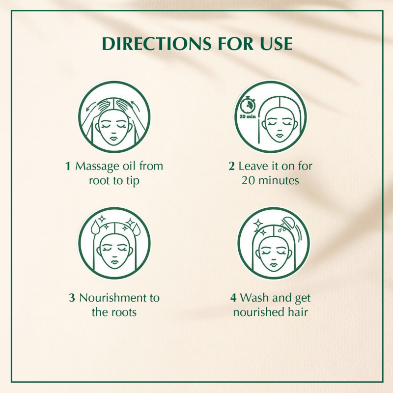 • Use your fingertips to gently massage the hair oil onto the scalp and the hair.