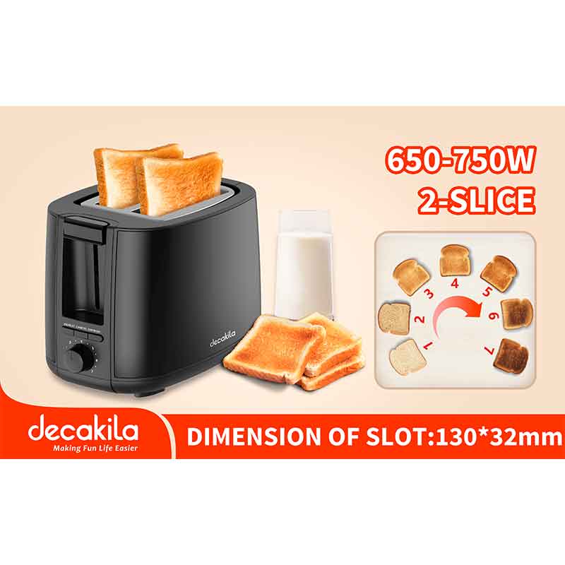 Decakila Toaster 2 Slice 750W Black 7 Toast Variants 7-Setting Browning Control With Removable Crumbs Tray KETS008B
