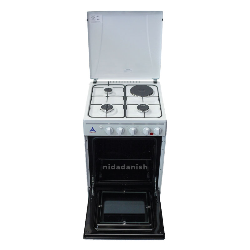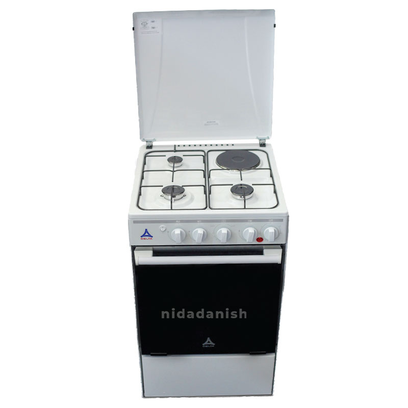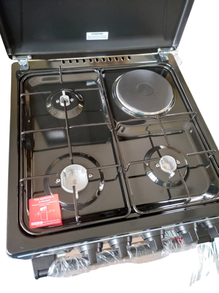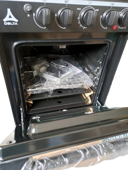 Delta Cookers 50x55cm 3 Gas Burner, 1 Electric Hotplate with Gas Oven & Grill Black DGC31B