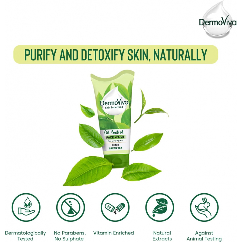 Dermoviva Face Wash Oil Control Green Tea 150ml – Set of 3 Pcs