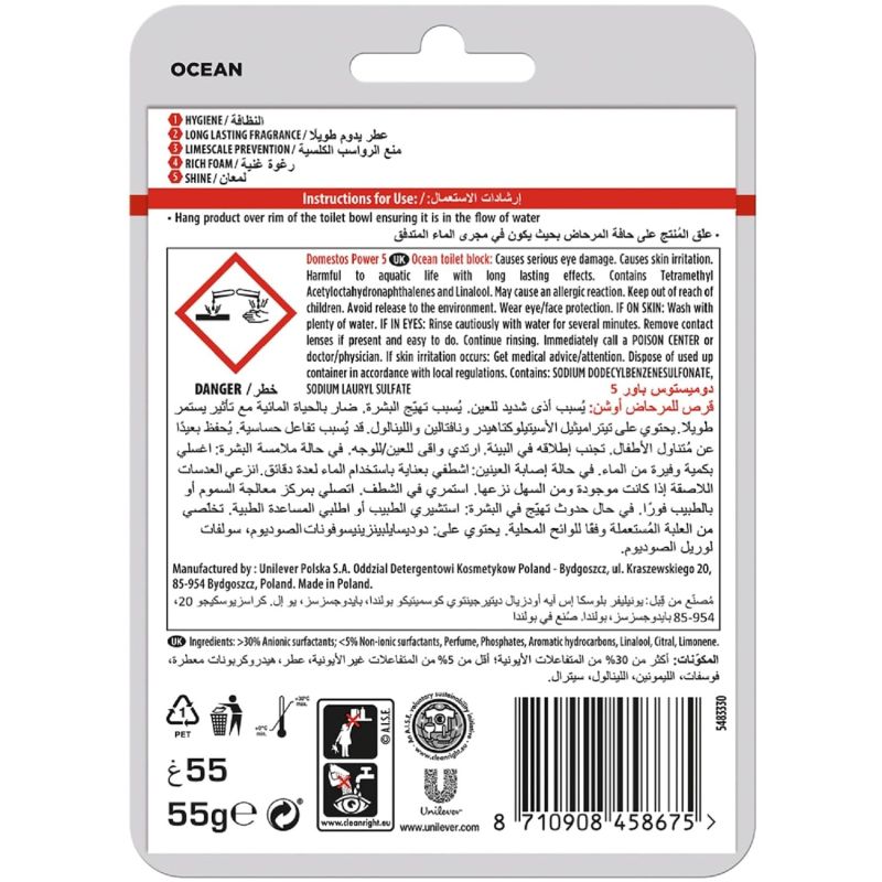 Domestos Toilet Rim Blocks, Provides Hygiene & Shine 55gm