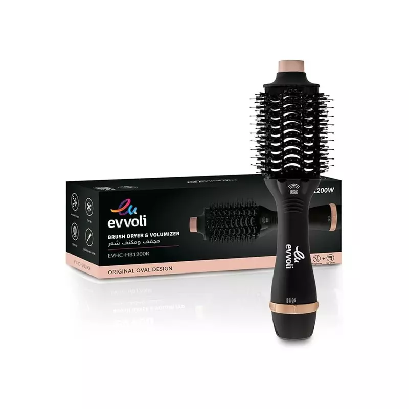Evvoli Brush Dryer & Volumizer 3in1 1200W Powerful DC Motor, Fast Drying Hair Dryer with 4X Ionic Feature and Cool Tip EVHC-HB1200R