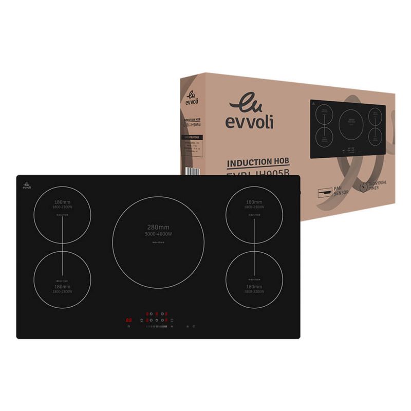 Evvoli Induction Hob 5 Burners Soft Touch Control With 9 Stage Power Setting 9700W IH905B