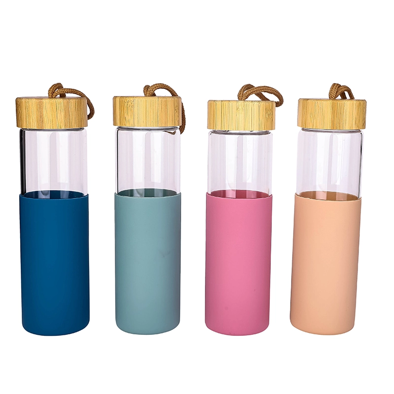 Glass Bottle 650ML Water Bottle Reusable Bottle with Bamboo Lid & Cover 9113-650