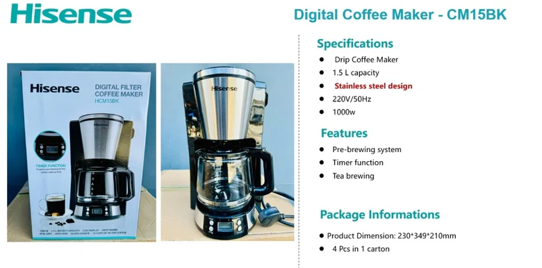 Hisense Digital Drip Coffee Maker with Filter 1.5L 1000W CM15BK