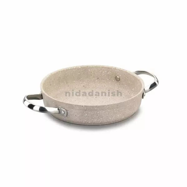 Granita, which is produced from recycled, completely natural material, with environmentally friendly technology, makes delicious meals using very little oil with its extra scratch-resistant volcanic-looking PTFE coating and high-temperature resistant silicone outer coating.