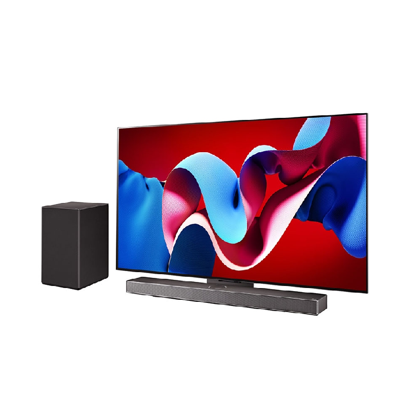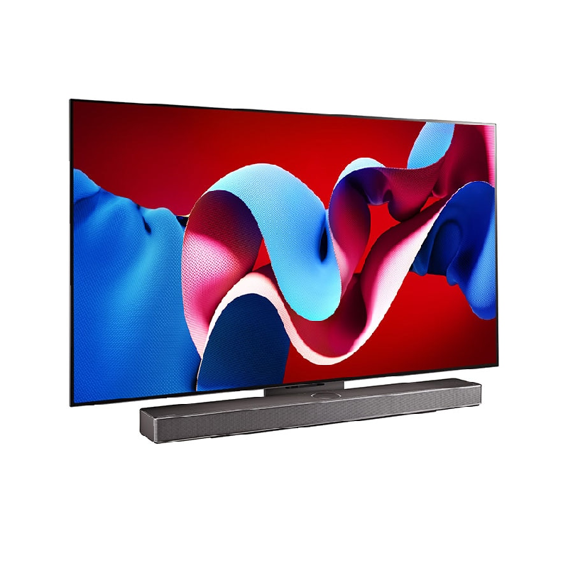 &Quot;An Angled Perspective Of The Bottom Corner Of Lg Oled Tv, Oled C4 Showing An Abstract Artwork Of A Forest On The Screen. The Tv Is Attached To An Lg Soundbar Via The Synergy Bracket And Has An Abstract Artwork Of A Forest On Screen.   Lg Oled Tv, Oled C4 And An Lg Soundbar In A Clean Living Space Flat Against The Wall With An Orchestral Performance Playing On Screen. &Quot;