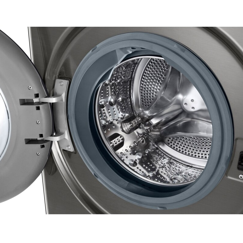 The tempered glass door front and stainless steel internal clothing lifters are two examples of the thought and quality materials built into this LG washer.