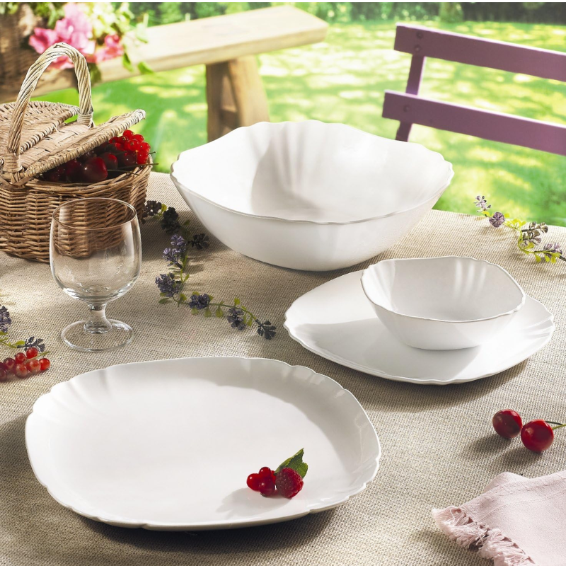 The organic and fluid shape of the plates in the Lotusia collection celebrates nature and its symbols. The lotus flower is in full bloom at daybreak, signifying a process of constant renewal. Bring well-being into your cuisine every day with pure white soft squares, ready and waiting to present your healthy recipes.