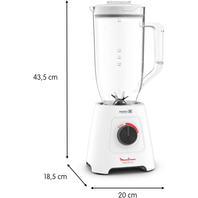 Moulinex Blender 2.8L Plastic Blender Jar with 2 Mills 600W, Grinder and Chopper, BlendForce XXL Jar Blender, 6 Powelix Blades, Leak Free Smart Lock 3-Point System, 2 Speeds, Pulse Function LM458127