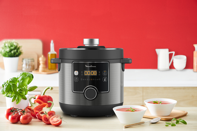 Your brand new solution for delicious meals in no time: With the TURBO CUISINE MAXI Fast Multicooker, Moulinex makes mouth-watering home cooking easier than ever. Whip up delicious, wholesome meals for the entire family with effortless automatic programs from starter to dessert and a pressure cooker mode for perfect results up to 3x faster*. Moulinex’s exclusive spherical bowl technology ensures tender and juicy results, with an intuitive single control knob for a user-friendly appliance. (*Up to 3X faster cooking compared to traditional cookware using gas or electric stove)