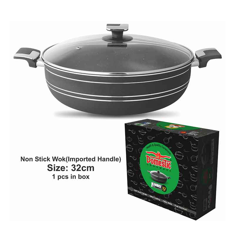 Nadstar Majestic Wok 32CM With Handle & Lid Non Stick Marble Coating Heat Tempered Glass Lids Heat Resistant Bakelite Handles For Easy Grip W32