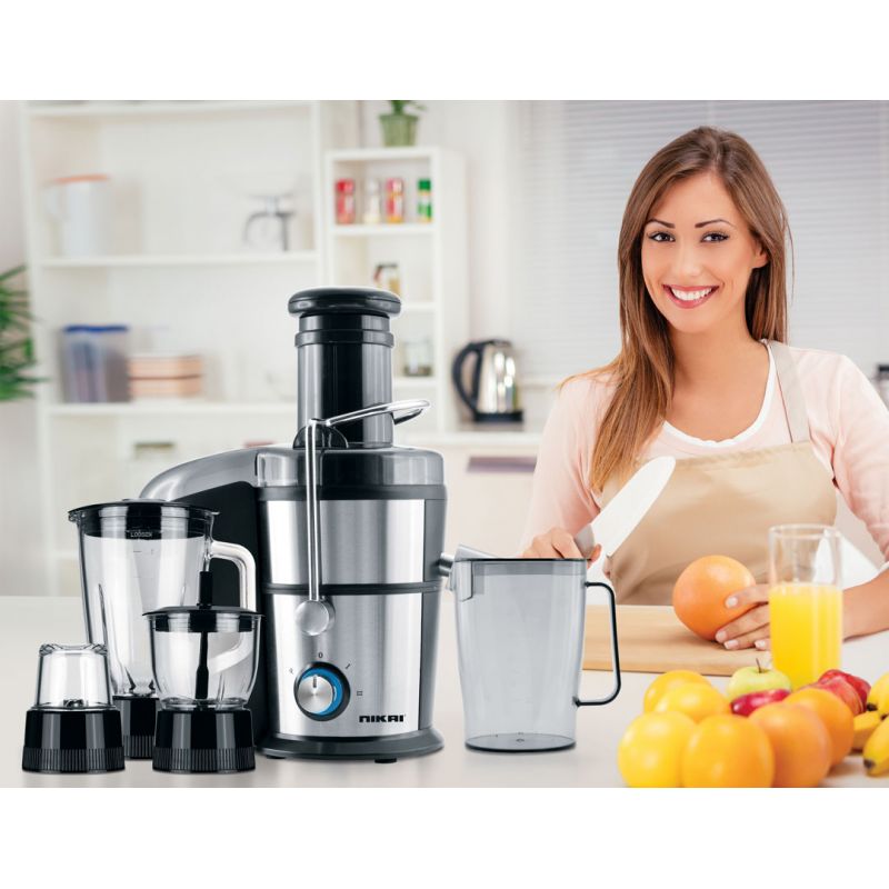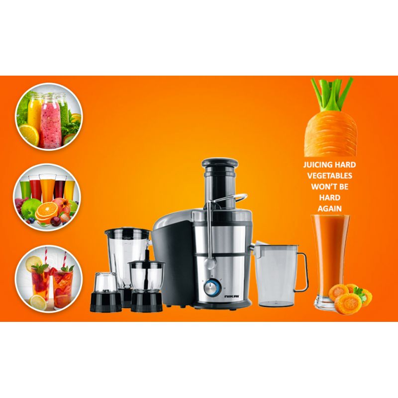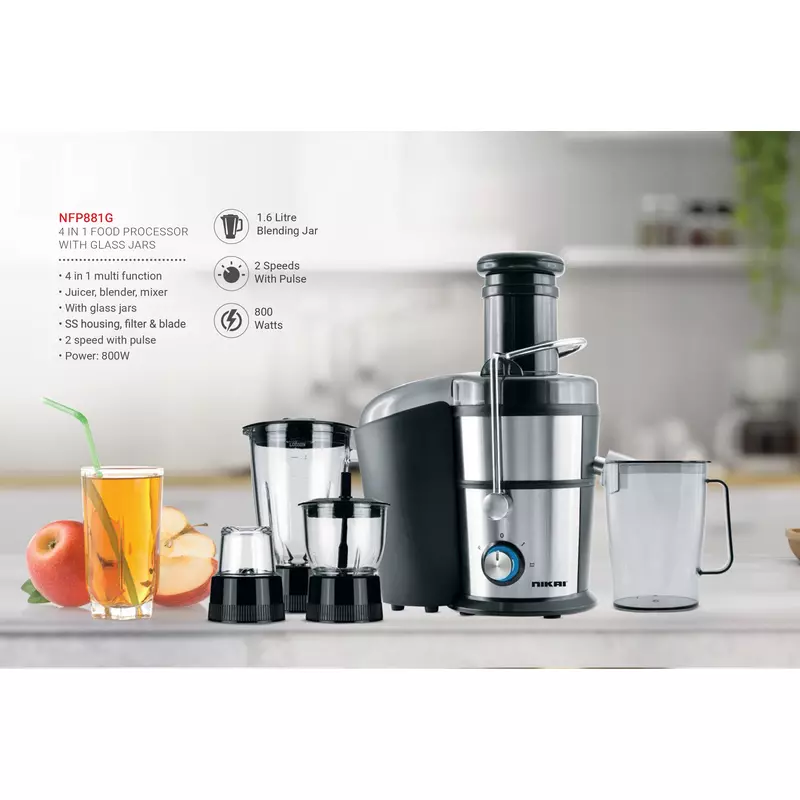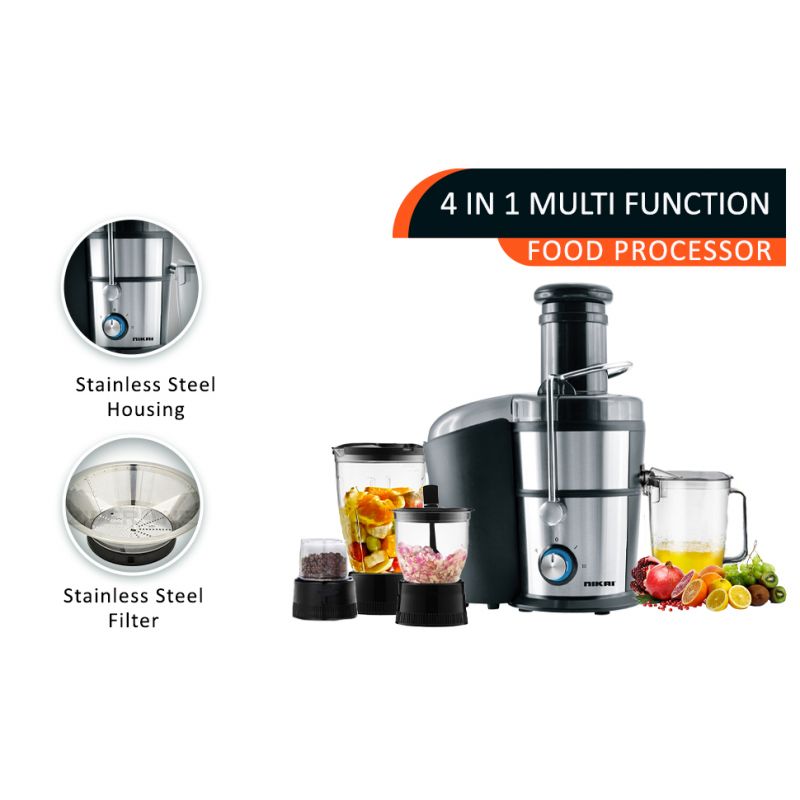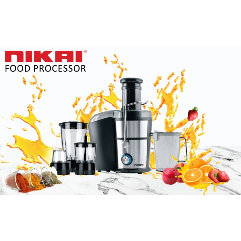 - A food processor with 800W Turbo power motor for 4-in-1 functioning – Juicer-Blender-Mixer and meat mincing. This Nikai appliance can do all your kitchen prep in half the time and at a faster speed.
