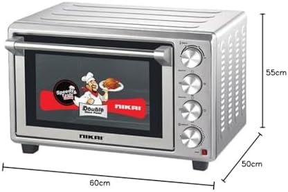 Nikai electrical appliances have the best build, using the highest quality materials. Ovens make cooking a faster experience. Be it a small dinner or baking a dessert, the appliance can do it all. The additional cooking accessories make experimenting with new dishes fun yet simple. They make cooking stress-free and easy. With a combination of high technology, and extreme style, Nikai ovens are the best addition to any cooking space. The appliance has stainless steel heating elements as they heat up fast, four knobs for control, a timer of 60 minutes with a bell ringer, a temperature control, stainless steel housing and panel, a double glass door for insulation, an inside lamp for illumination in the oven interior, a rotisserie fork to cook your meats evenly, a convection fan for cooking evenly, and a keep-warm function.
