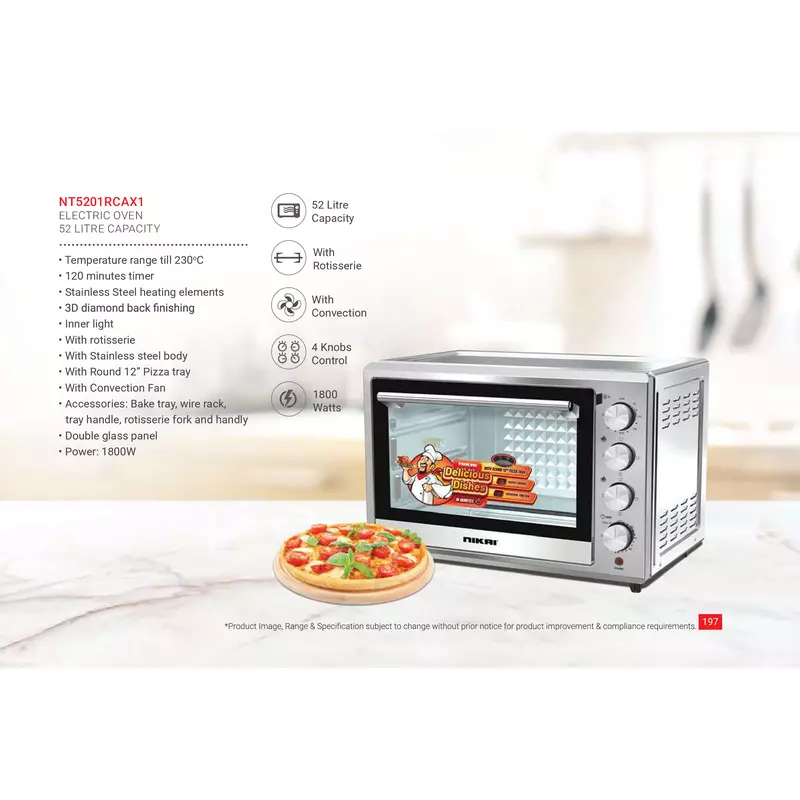Nikai 55 Liter Capacity 1800W Electric Oven with Convection Fan & Rotisserie