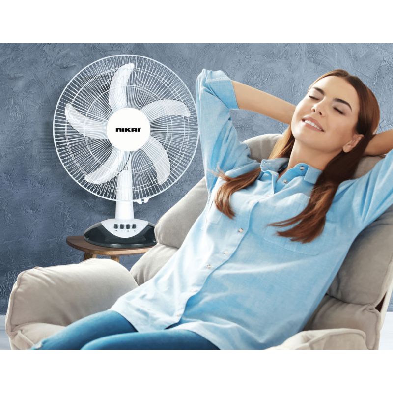 Nikai Table Fan 16″ 41W High Performance Copper Motor Wide Angle Horizontal Oscillation 5 Leaf “AS” Transparent Blades NTF1638T1