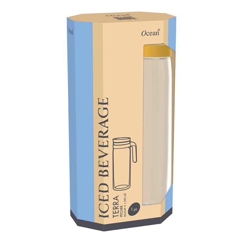 Ocean Jug Terra Pitcher Mimosa Yellow 1390ml – Stylish Glass Serve Pitcher for Water, Juice & Cold Beverages 3B2434901G0006