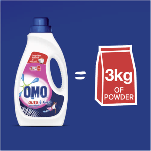 Omo Auto + Comfort Washing Liquid 2L dissolves faster than a regular auto washing powder and is specifically formulated to penetrate deep into the fibres of your clothes, removing even the toughest stains faster!