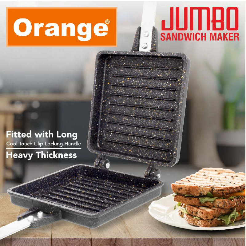 Orange Jumbo Sandwich Toaster, Non-Stick + Granite Coating ONSC081