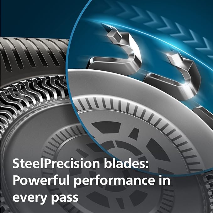 With up to 90.000 cutting actions per minute, the SteelPrecision blades shave close, cutting more hair per stroke*. The 45 high-performance blades are self-sharpening and made in Europe.