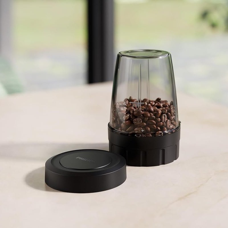 Enjoy freshly ground coffee and spices at home with 300 ml small cup and flat blade. Use them instantly or pop on the lid to store for later. The cup is made with Tritan from Eastman, it is 100% BPA free, shatter-resistant, and dishwasher-safe.