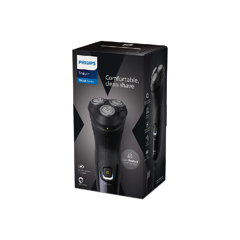 Philips Shaver 3000X Series gives you a comfortable, clean shave at an accessible price. The 27 self-sharpening ComfortCut blades, wet and dry use, and a pop-up trimmer make the shaver easy to use and provide excellent value.