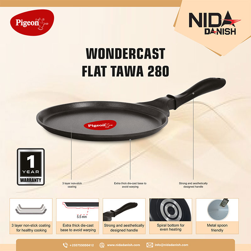 Shop online for the high-quality, affordable Pigeon Tawa 27cm Nonstick Flat 280 Wondercast Sap 729 – 3 Layer Anti Peeling Food Safe Nonstick Coating Extra Thick Layer. Discover seamless online shopping in Tanzania with Shopfasta, Explore a wide range of premium Pigeon Frying Pan & Tawa at unbeatable prices. Enjoy the convenience of free delivery on select products in Dar es Salaam. Don’t miss out on smart shopping and big savings with Tausify Shopping, Karibu sana—start your hassle-free shopping experience today