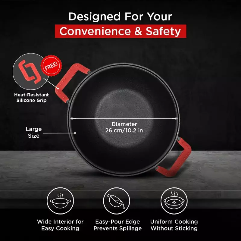Pigeon Imperi Luxe Cast Iron Kadai 26cm – Natural Non-Stick, Toxin-Free & Durable Cookware Sap 16301