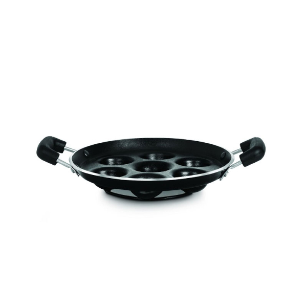 Pigeon Kitumbua 7 Hole Wondercast Aluminium 7 Rounds Panniyarkal Pan (Black)