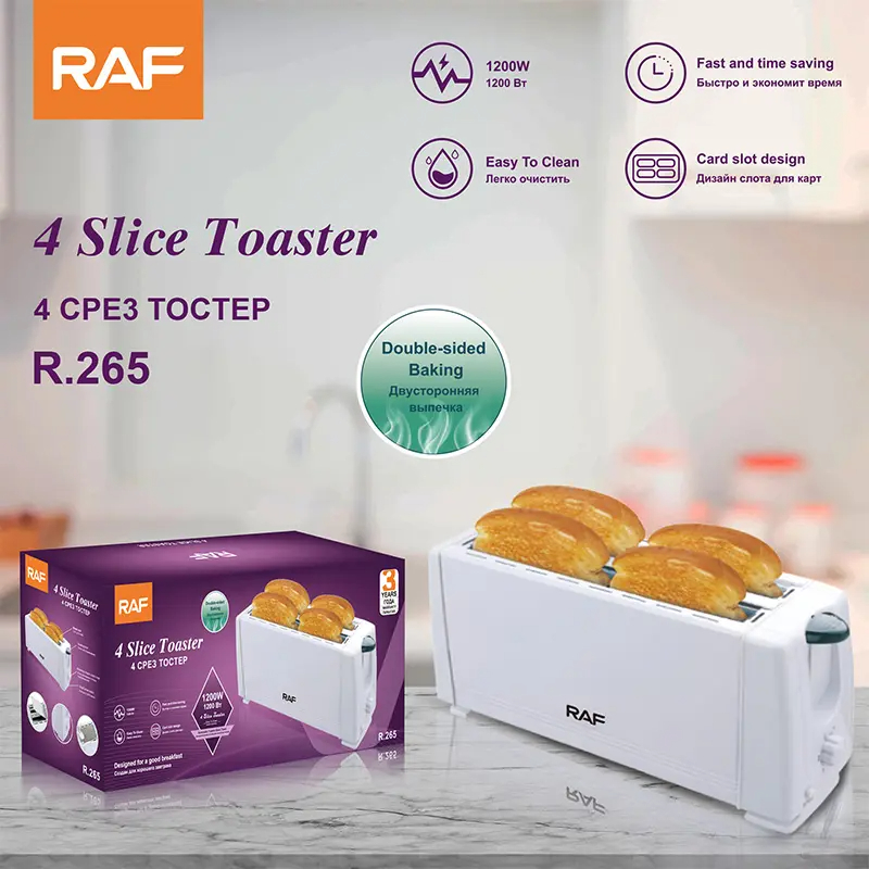 RAF Bread Toaster 4 Slice 1200W, Double Sided Baking, Card Slot Design R.265