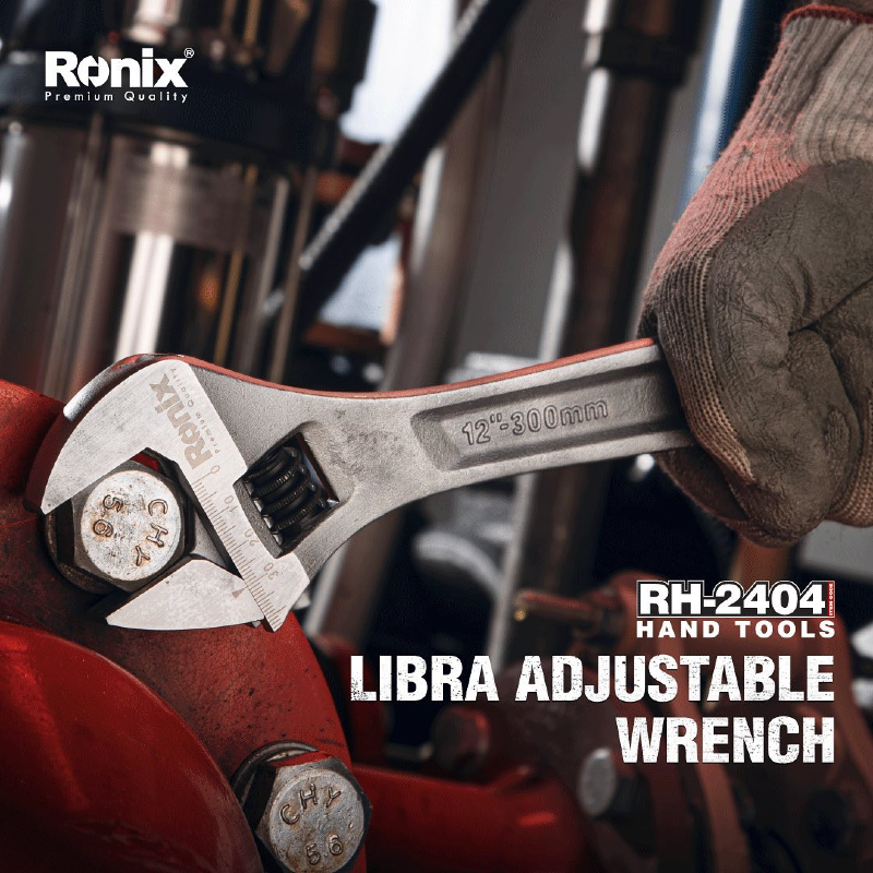 Owning a set of fixed wrenches and spanners sounds practical and exciting but having to constantly change wrenches during work is something that can become frustrating over time. This is why adjustable wrenches have been invented; they allow the users to tighten or loosen bolts and nuts with various sizes. With the Ronix Libra Series Adjustable Wrenches, you become needless of fixed wrenches which saves space in your toolbox for more practical tools. Alongside space, you will also save a lot of time, as you spend less time changing between different sizes of spanners you have to find the right one for your work. Ronix Libra Series Adjustable Wrenches are made of high-grade steel for more strength and durability. Their highly resistant hardened jaws are designed to perform well in high pressure situations. To help the users in more precise applications, mm and inch scales are engraved on both sides of these adjustable wrenches with laser.