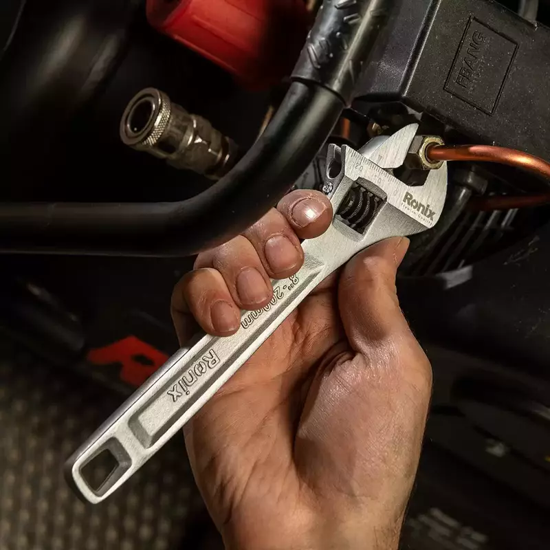To handle various fasteners with different dimensions, Ronix Libra Series Adjustable Wrenches are produced in 5 sizes; 6″ (155mm), 8″ (205mm), 10″ (250mm), 12″ (300mm) and 15″ (375mm). You don’t know which size to choose? Well, based on the range of work you usually do, you can know which size suits your needs best. If you are an engineer working with electronic machines, the Ronix 6″ and 8″ wrenches are more suitable for you. But if you are a mechanic working with cars, the larger sizes will cover your needs better.