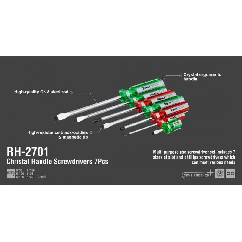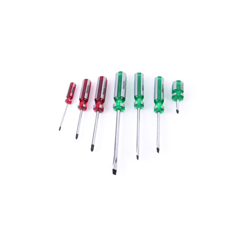 Size As mentioned above, Ronix RH-2701 & RH-2702 Cr-V 7Pcs Screwdriver Set come in different sizes. With these sizes, you can take care of assembling or dissembling your workpieces with any screw size for different gadgets, such as laptops, computer cases and monitors, cameras any other electronics or furniture. The slot drive and phillips drive types come in variety of sizes in the tip and length.