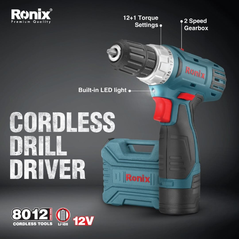 The Ronix 8012 12V Cordless Drill Driver at a glance is one of our most convenient tools among all our other cordless drills with screwing function that has all the characteristics you expect for your everyday needs. Compared to other leading brands in the market, this model’s competitive advantages are its reasonable price, compact design and multiple performances which make it a suitable choice for any operators with different number of skills at jobsite or home. Get it done without concern.