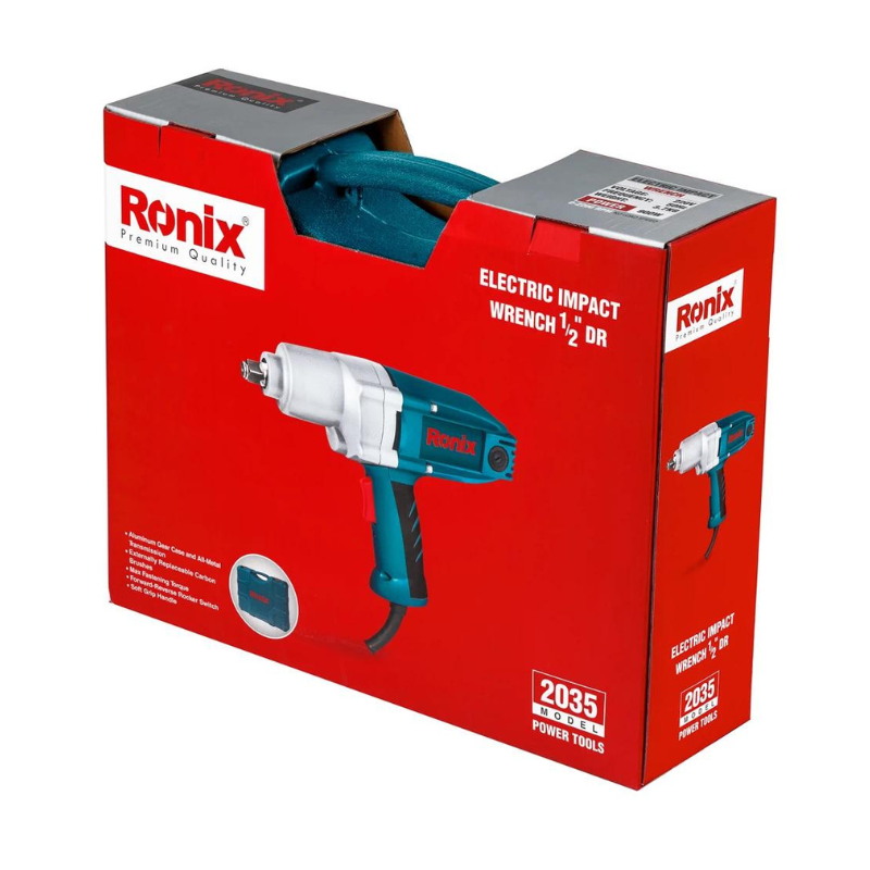 Ronix 2035 Electric Impact Wrench with 3.7kg, has an ergonomic design that enables fatigue-free operations in different industries. Its robust die-cast aluminum housing is for optimum heat dissipation and durability.