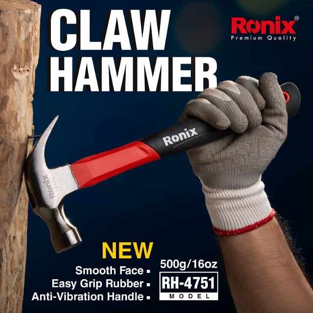 The weight of a hammer, as another important factor in its performance, is directly related to its size. Ronix RH-4726 & 4751 Claw Hammers come in two different sizes. Obviously, the size is synonymous with the weight. The more force needs to be imposed, the heavier the hammer must be. Ronix RH-4726 Claw Hammer is 250 gr; an ideal weight for getting a wide range of simple works done in an easy-peasy way. On the other hand, Ronix RH-4751 Claw Hammer which can be used for tougher missions is just 0.5kg. Overall, the curved claw design makes these claw hammers perfect tools for construction, minor maintenances, building works, woodworking, home repair, removing & pulling out nails, hanging household items, and an endless array of home chores.