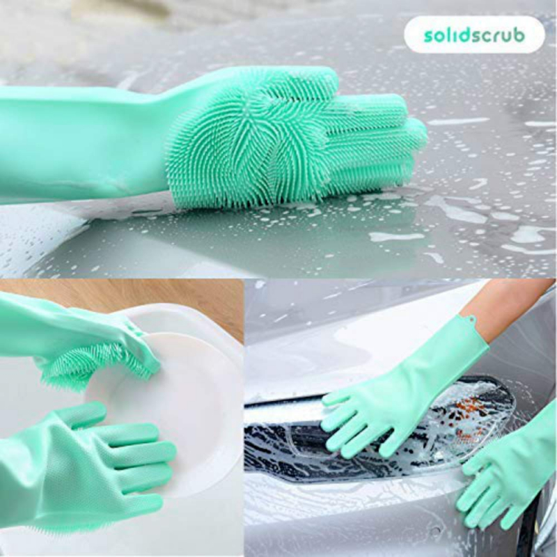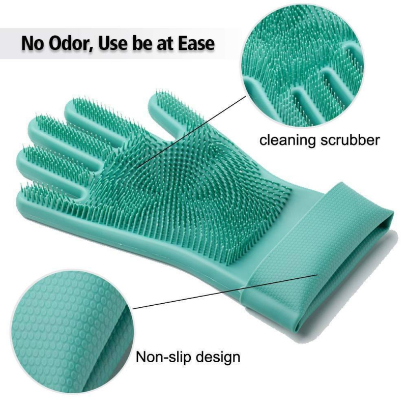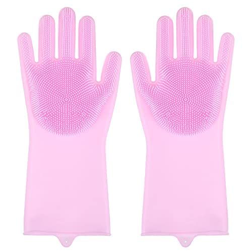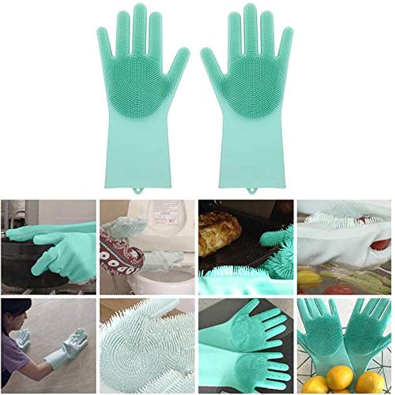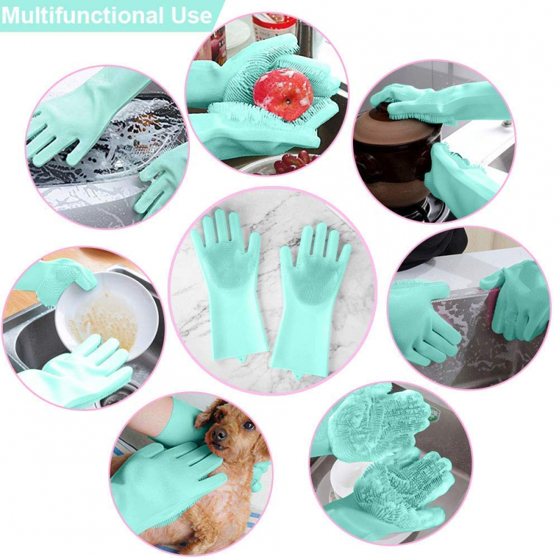 Silicone Hand Gloves Reusable Heat Resistant for Kitchen Bathroom Dishwashing Pet Grooming Car Washing 1 Pair