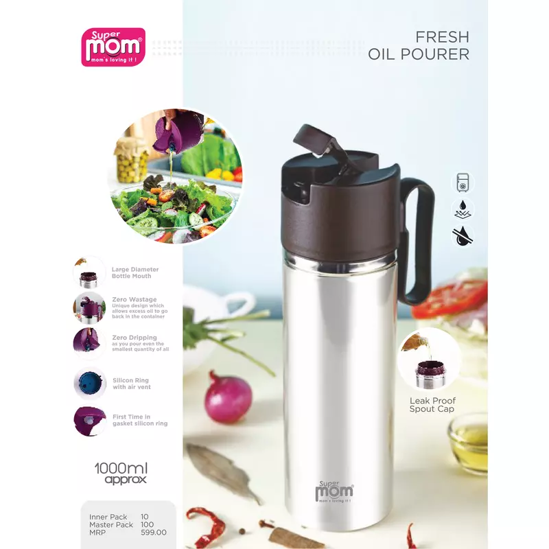 Supermom Fresh Oil Pourer 1000ml Stainless Steel Body Leak Proof Spout Cap 573867