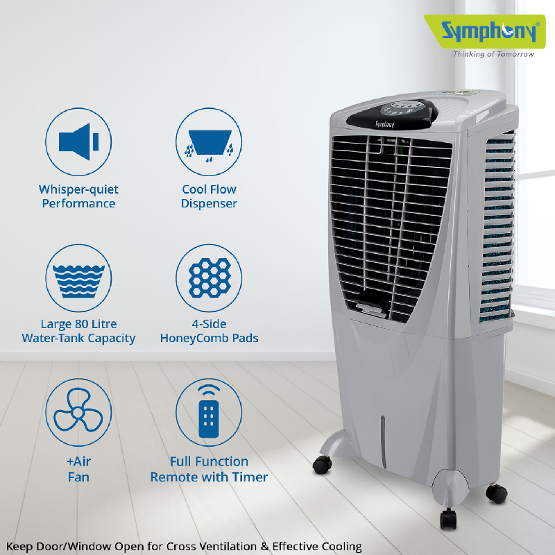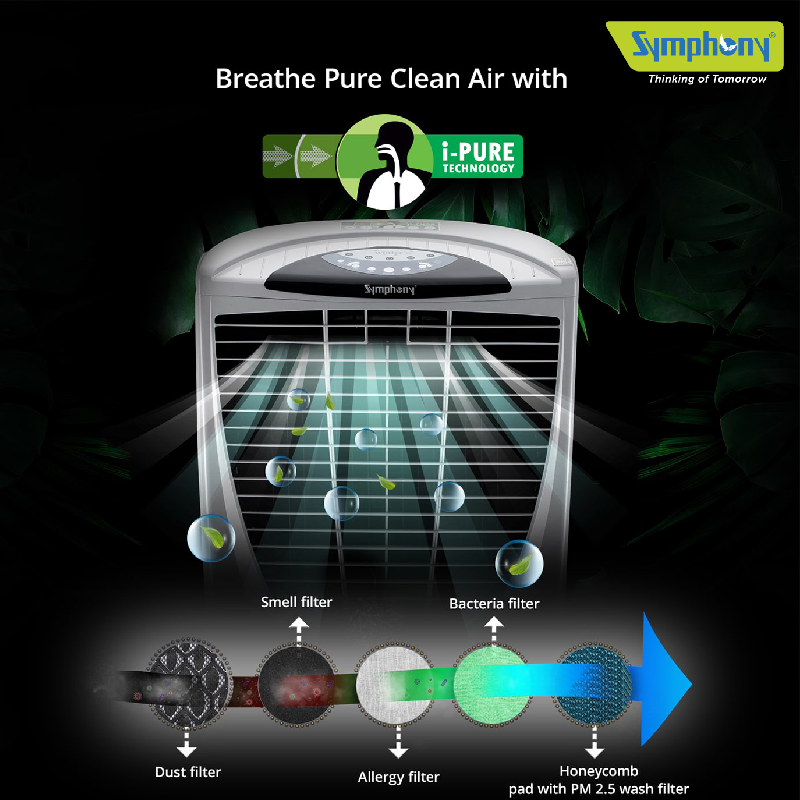 Symphony Desert Air Cooler 80L with Powerful Fan, Honeycomb Pads, i-Pure Technology WINTER 80XL