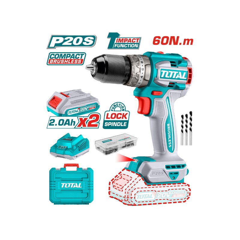 Shop online with ease and save big on high quality and cheap Total Compact Brushless Impact Drill, Cordless Lithium-ion 20V TIDLI20602 and Discover the ease of online shopping in Tanzania with Tausify, where you can find premium Drill and Impact Drill at incredibly low prices. Experience a wide selection of Total Tools Power Tools products. Plus, enjoy the convenience of free delivery on numerous products in Dar es Salaam. Take advantage of the smart online shopping experience and substantial savings only with Tausify, Karibu.