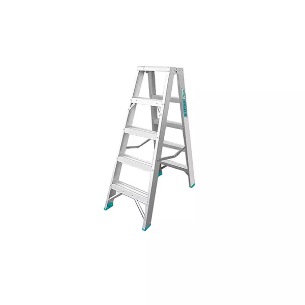 Total Double Sided Folding Ladder Aluminium 2 x 5 Steps, Easily Foldable for Space Saving Storage, Oxidation THLAD01051