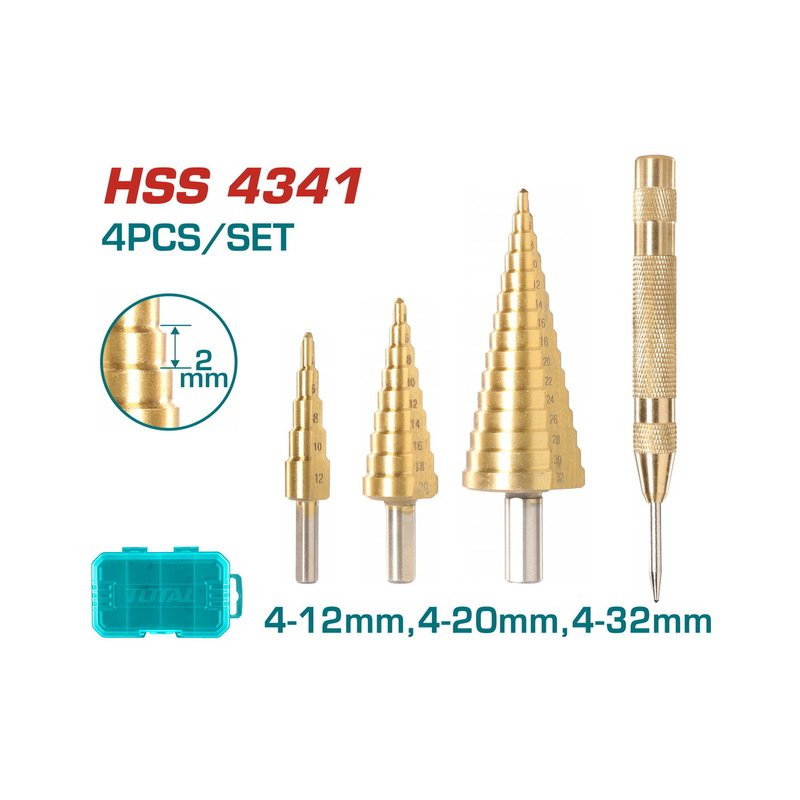 Shop online with ease and save big on high quality and cheap Total Step Drill Bit Set with Automatic Center Punch TACSD2041 (Pack of 4pcs) and Discover the ease of online shopping in Tanzania with Tausify, where you can find premium Drill and Impact Drill at incredibly low prices. Experience a wide selection of Total Tools Power Tools products. Plus, enjoy the convenience of free delivery on numerous products in Dar es Salaam. Take advantage of the smart online shopping experience and substantial savings only with Tausify, Karibu.