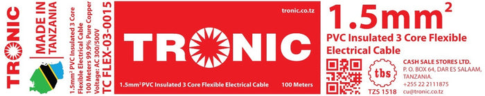This 1.5mm PVC insulated 3 core flexible cable is manufactured in Tanzania and ensures optimal conductivity with its 99.9% pure copper composition. With a length of 100 meters, it provides ample coverage for your wiring needs. Durable and flexible, this cable is perfect for a variety of electrical applications.