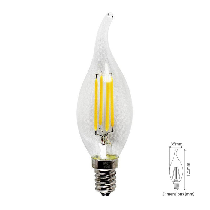 Tronic 4 Watts Candle Tail Filament LED Warm White E14 (Small Screw) Bulb